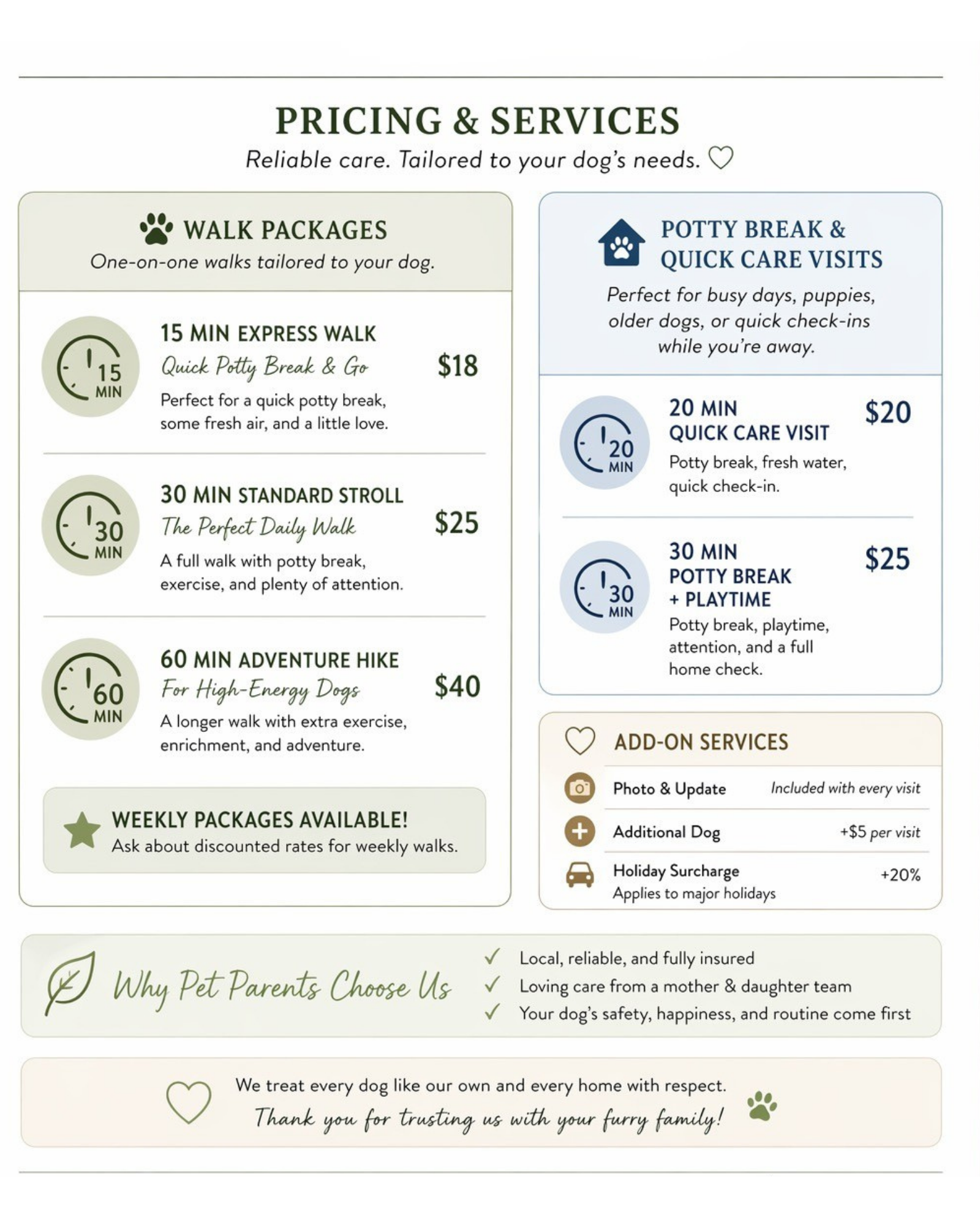 Because every pup carries its own playlist of needs, we tune the tempo to match: brisk marches for the cardio crowd, slow moseys for the philosophizers. Your dog returns home satisfied, not just exercised—think post-vacation glow in paw form.
